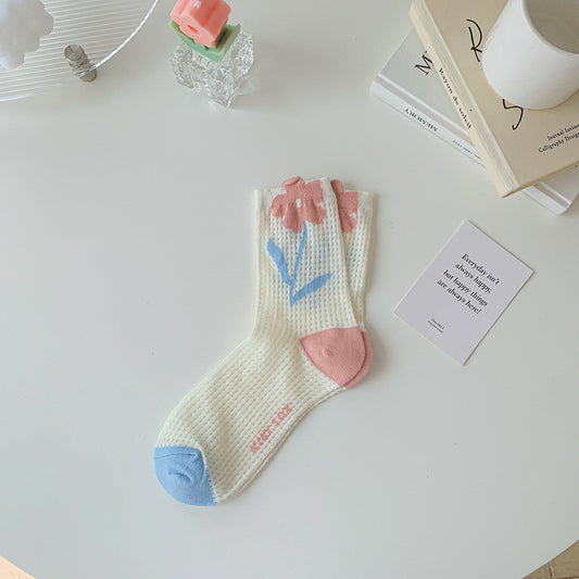 Women's Tulip Flower Glass Silk Socks