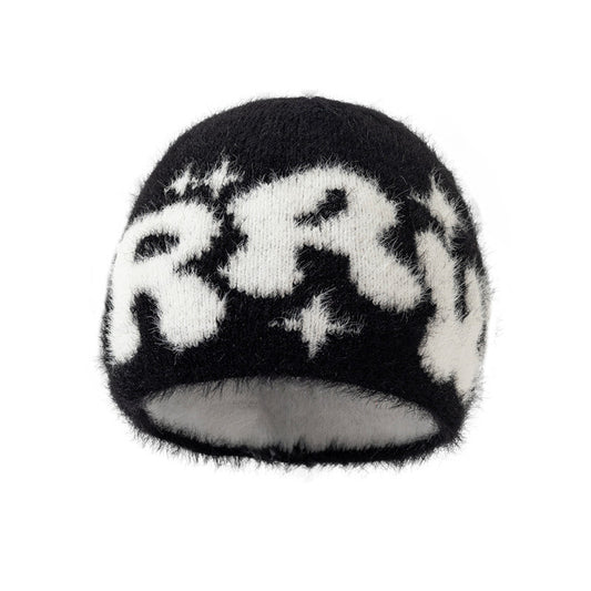 Winter RB Letter Fashion Rabbit Fur Knitted Warm Beanie Hat
