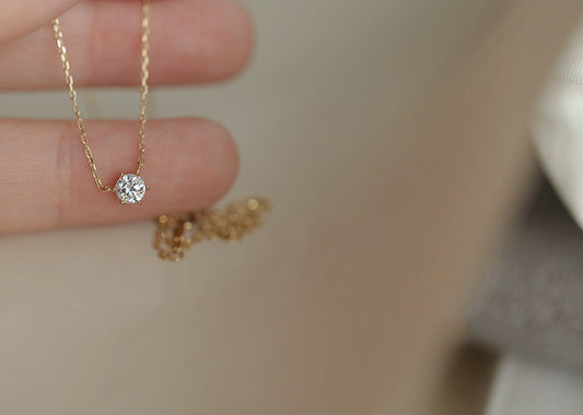 Silver Plated 14K Gold Versatile Single Diamond Clavicle Necklace