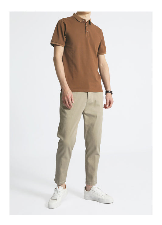 Solid Color Men's Business Short Sleeve Lapel T-shirt