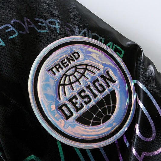 Letter Printing Contrast Stitching Loose Baseball Style Jacket