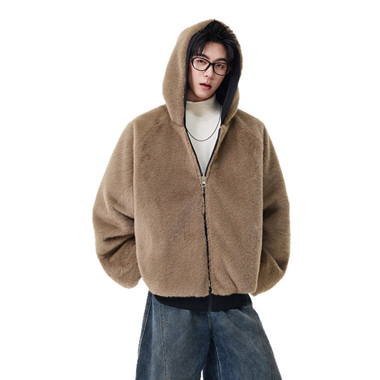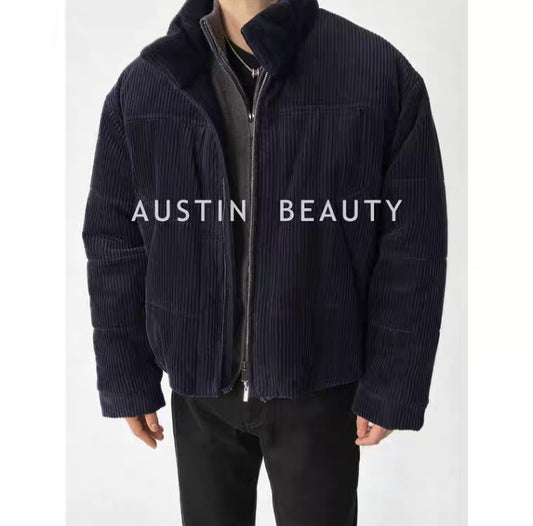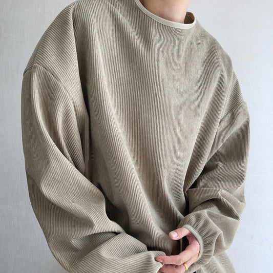 CORDUROY STRIPPED EXUDE LAMB WOOL FLEECE HOODIE