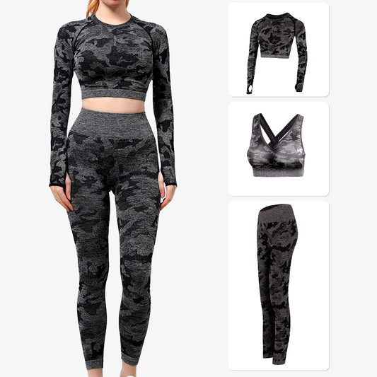 CAMOUFLAGE THREE PIECE YOGA SUIT