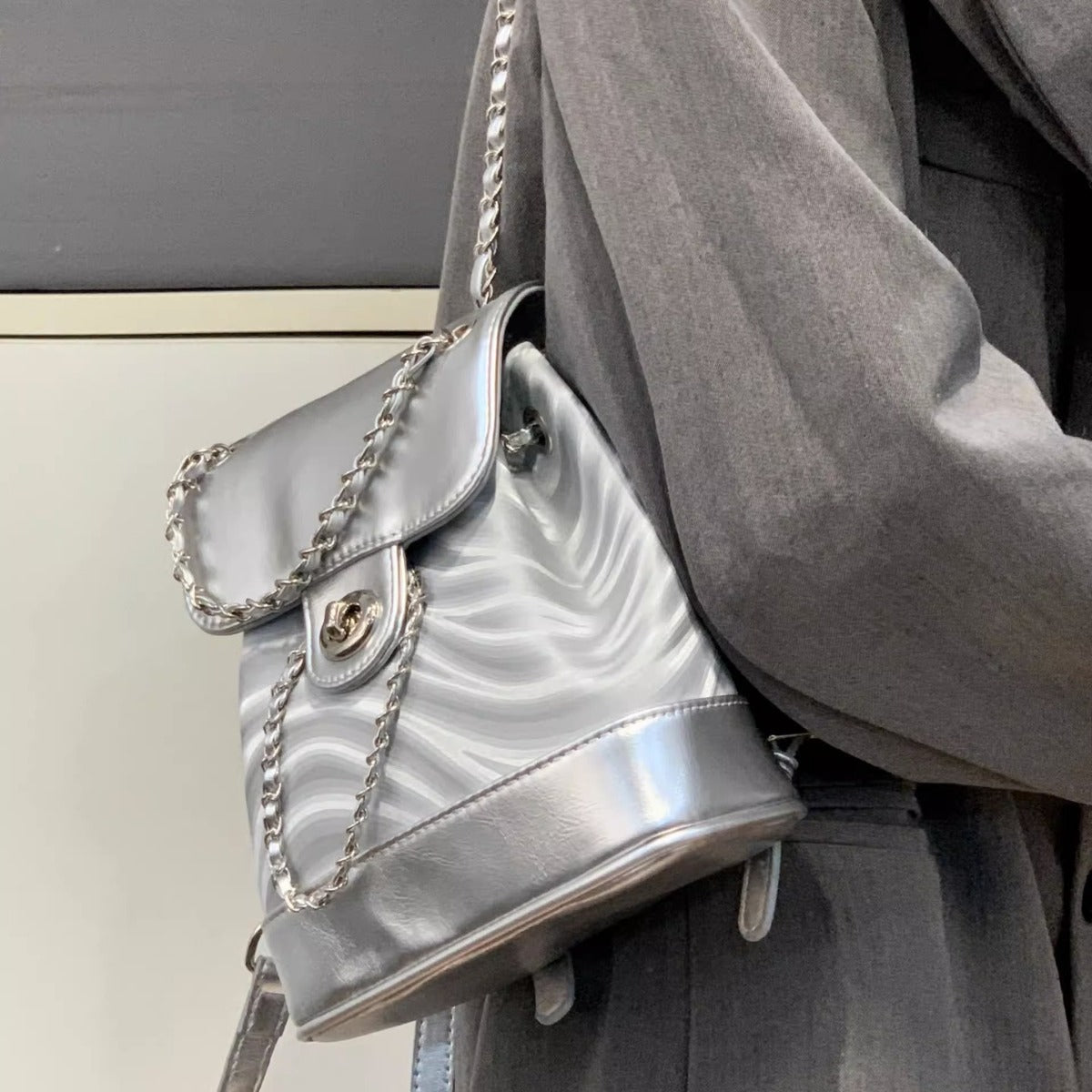 Chain Backpack Women's Water Ripple Fashion Travel Backpack Bags