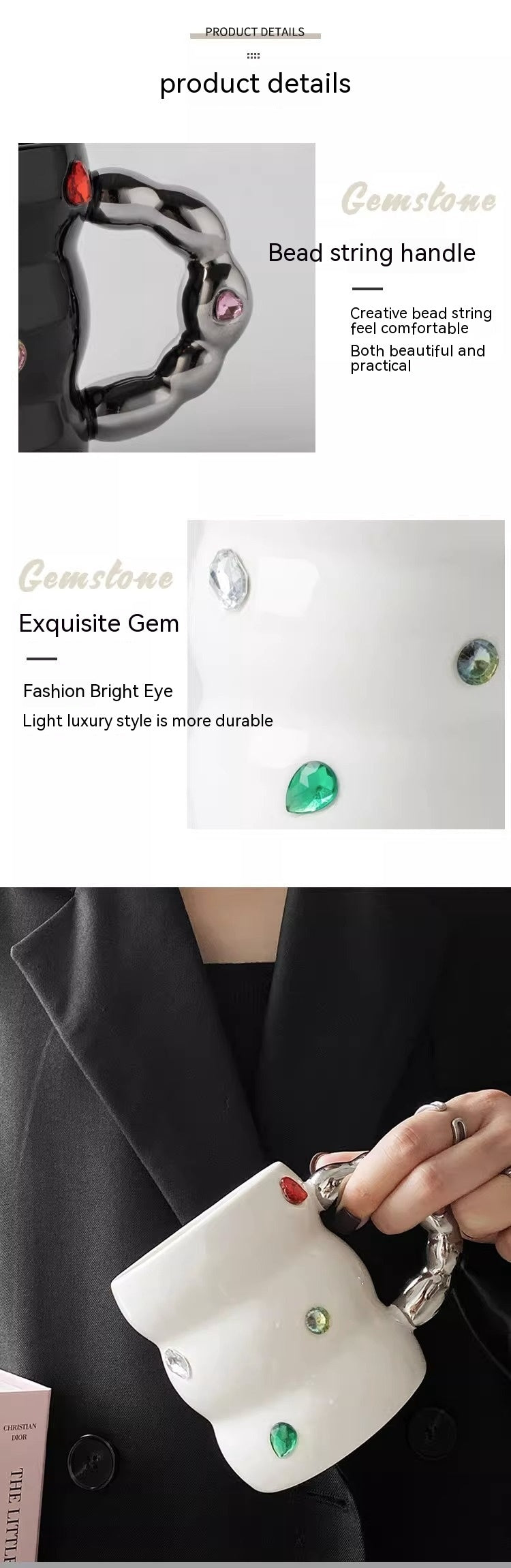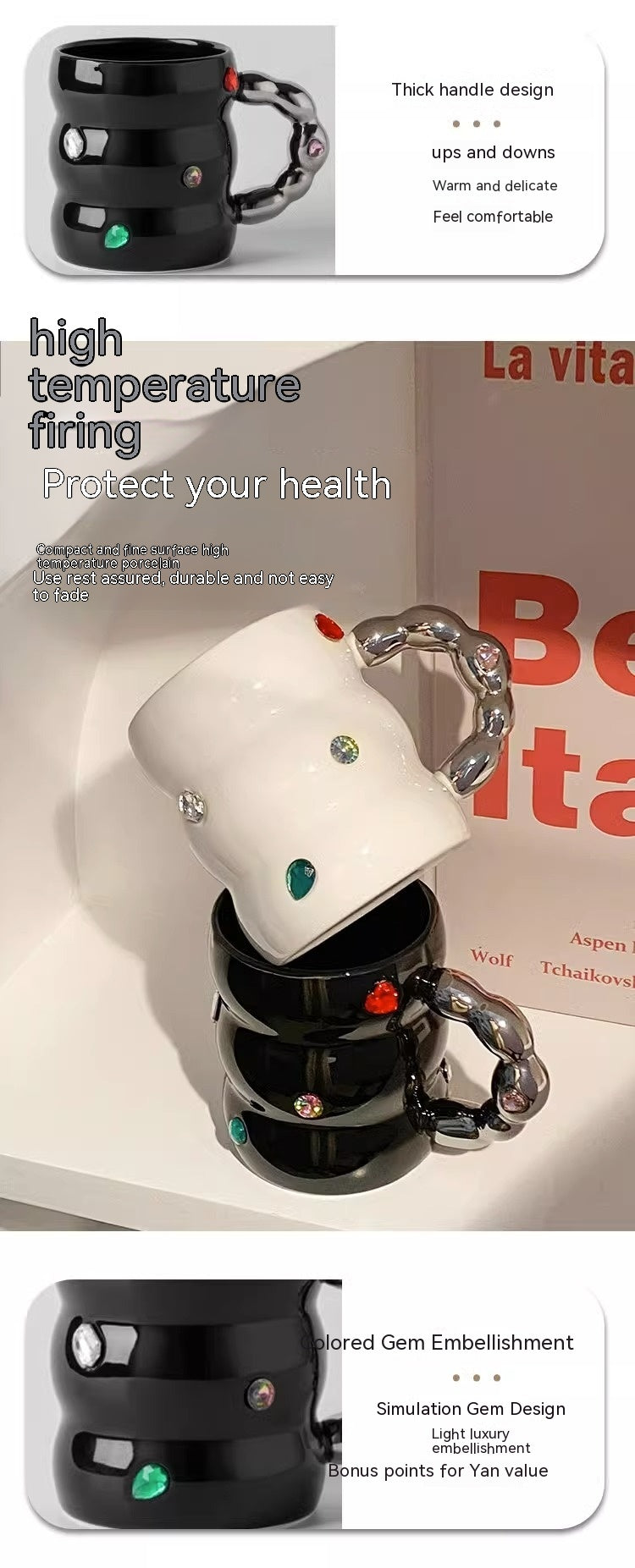 Creative Gem Enamelled Thickened Handle Ceramic Cup