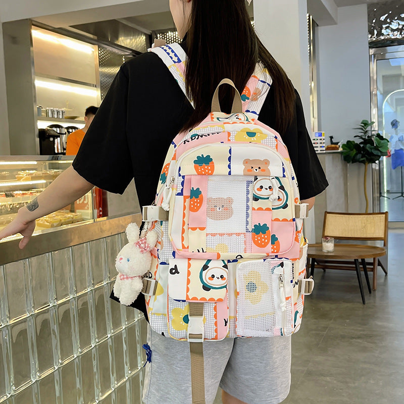 Cute Cartoon Doodle Illustration Schoolbag Girl