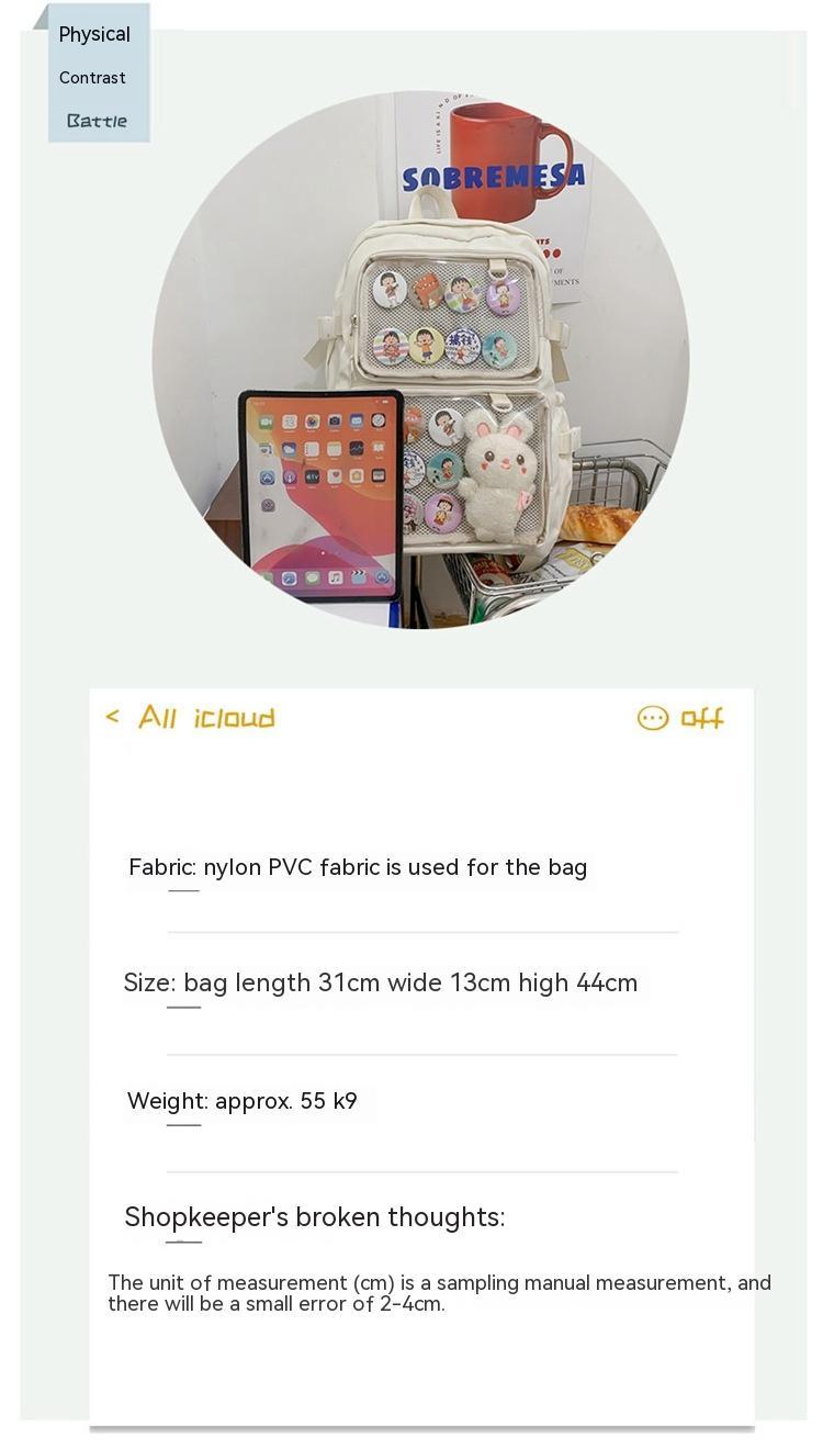 Internal structure of the bag: zippered hidden bag, mobile phone bag, ID bag, computer insert bag