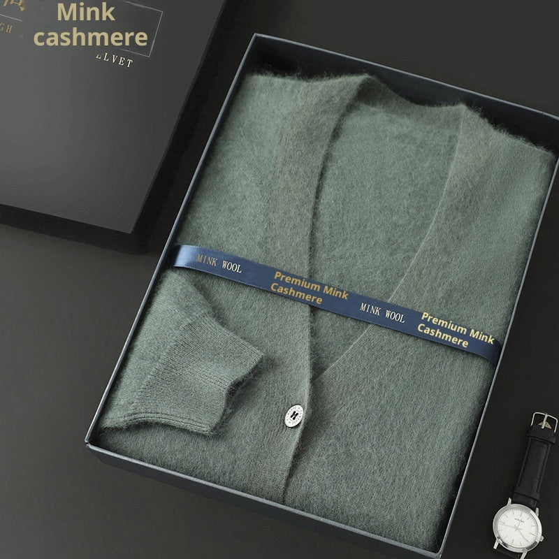 Mink Wool Men V-neck Thickened Sweater Loose Cardigan