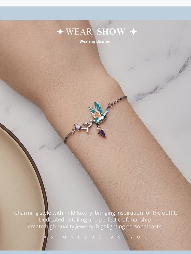 Mori Style Special Interest Light Wind Bird 925 Silver Bracelet
