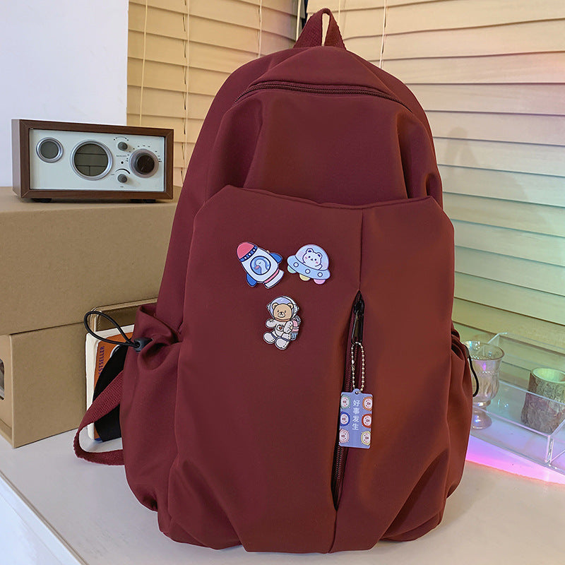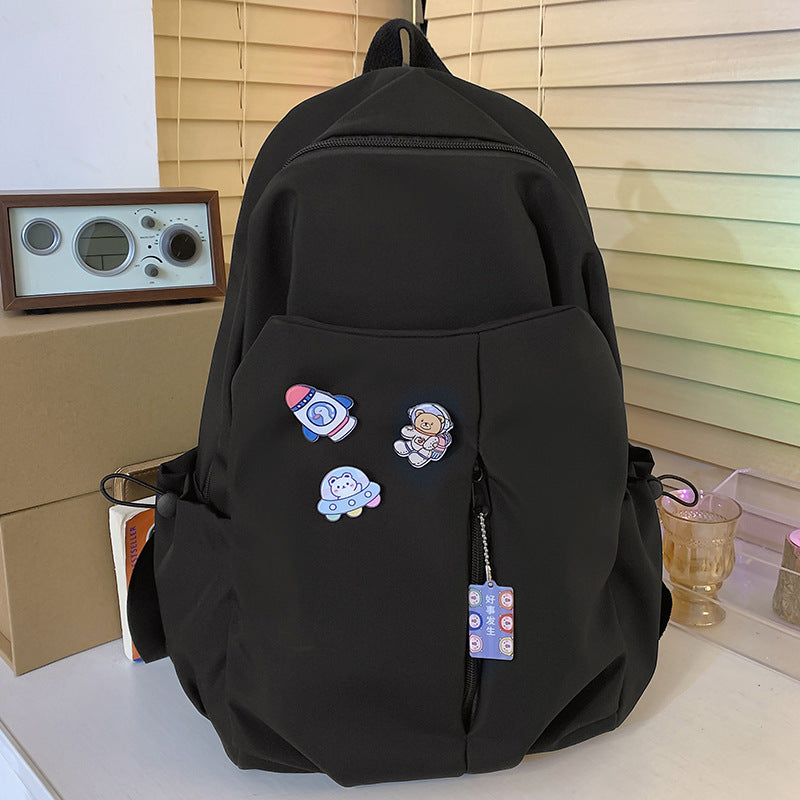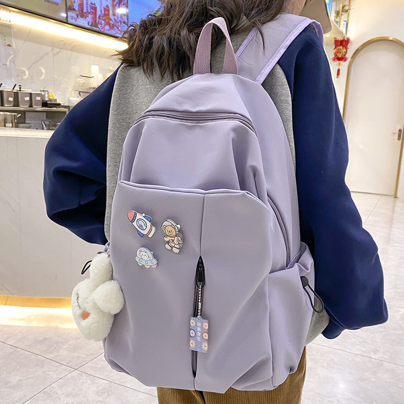 Color: black with four badges, white with four badges, red with four badges, purple with four badges, blue with four badges, black with four badges and rabbit head pendant, white with four badges and rabbit Head pendant, red with four badges and rabbit head pendant, purple with four badges and rabbit head pendant, blue with four badges and rabbit head pendant