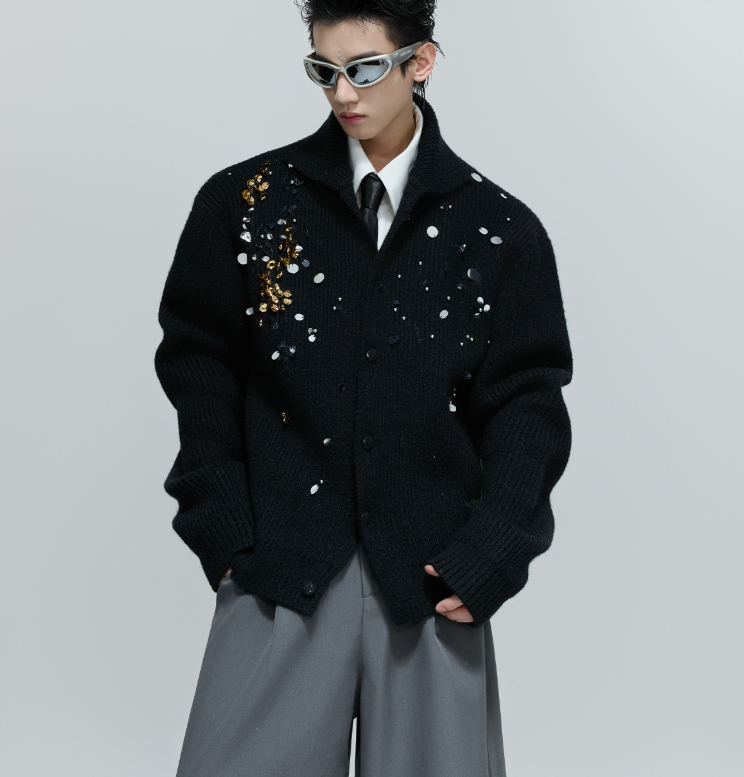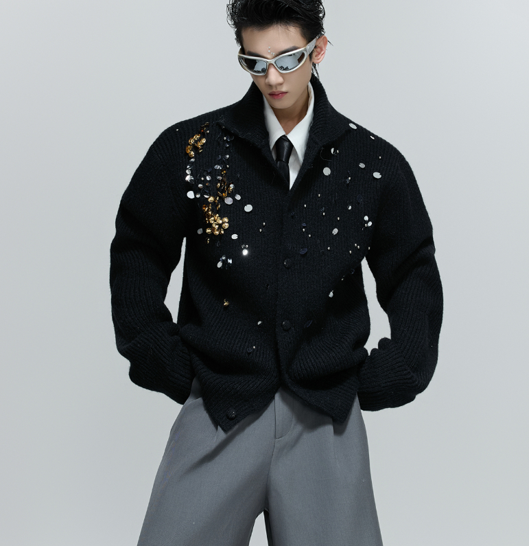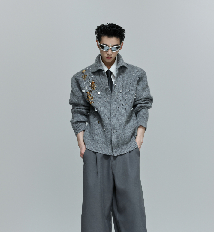 RUAN SHUAI RHINESTONE CARDIGEN JACKET