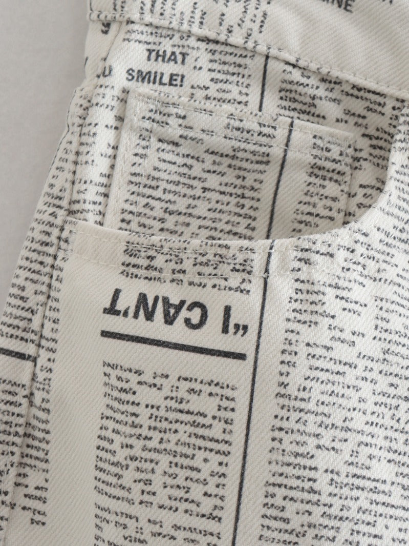 Woman Fashion Beige Print Straight Patchwork Trouser Pant