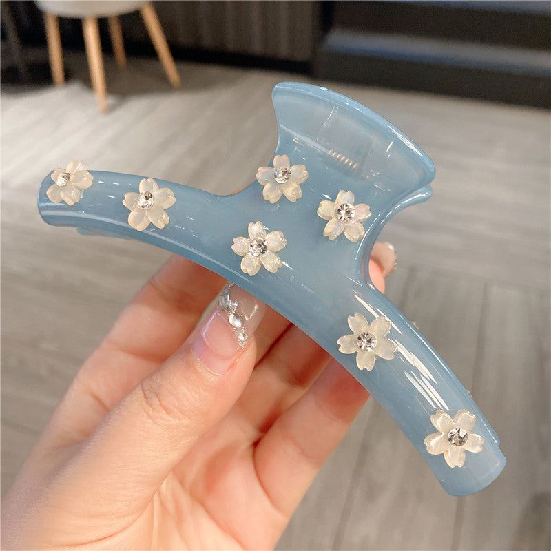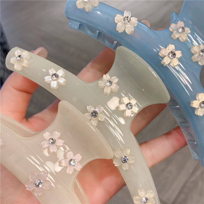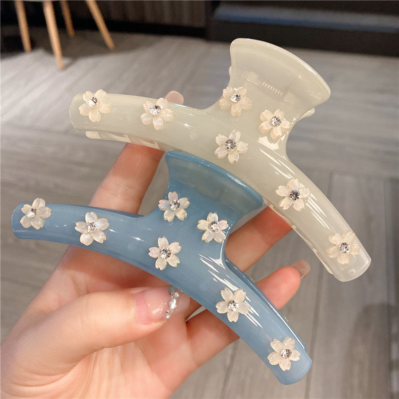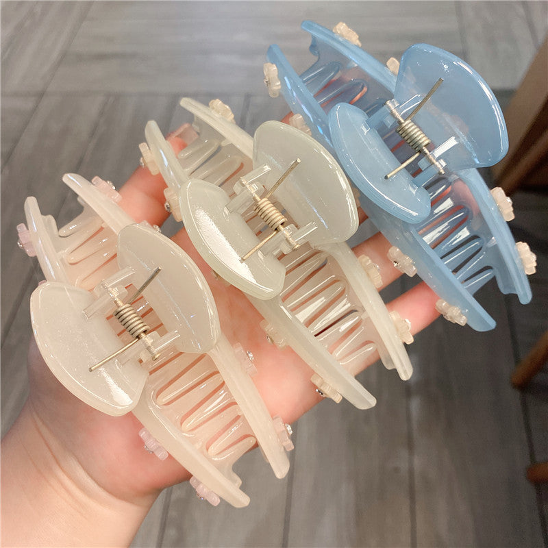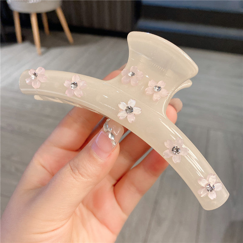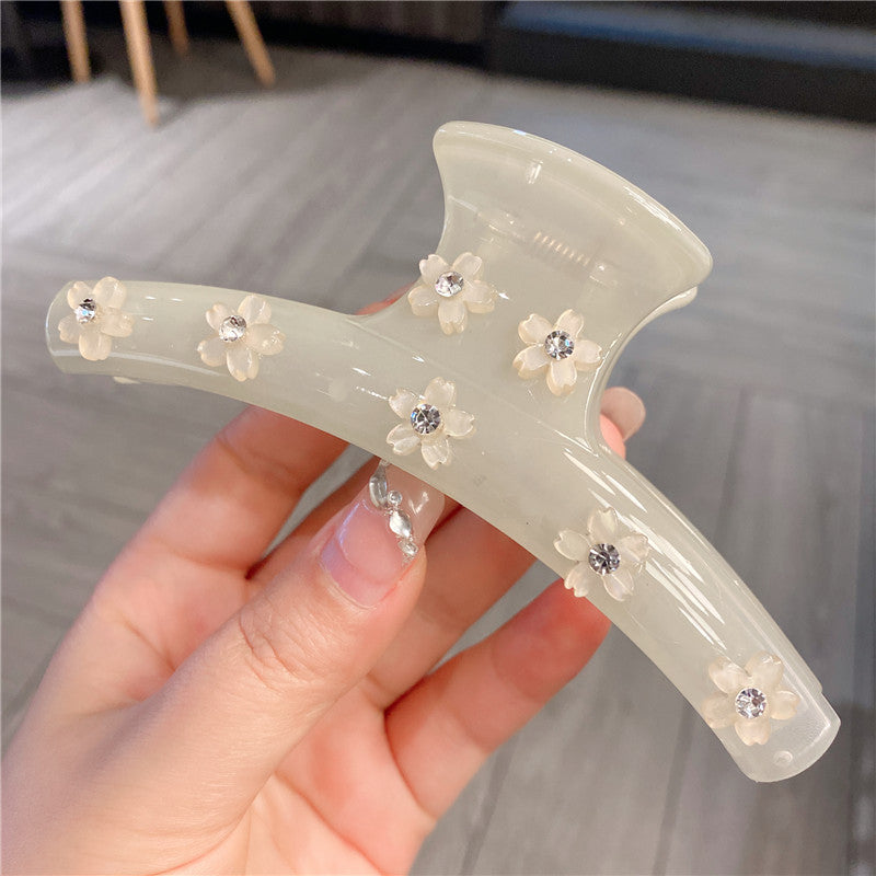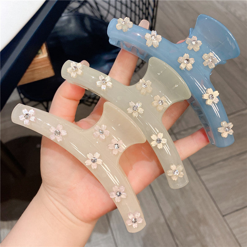 Women's Rhinestone Large Grip Small Floral Claw